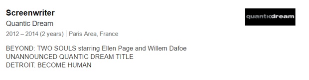 Oltre a Beyond: Two Souls e Detroit: Become Human, le pagine degli scrittori Zachary Parris e Joel Janisse fanno riferimento anche ad un “unannounced Quantic Dream projects on PlayStation 4”, ovvero un progetto non ancora annunciato per PlayStation 4. Pare che i lavori siano cominciati addirittura nel 2014.