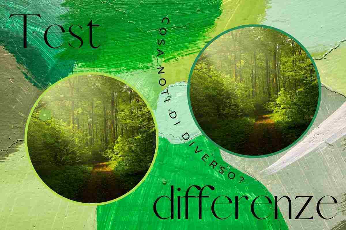 I test visivi sono sempre molto utili per mettere in gioco la propria concentrazione. In questo caso bisognerà farlo ancora di più del solito, considerando che il livello di difficoltà del gioco è piuttosto elevato. Nelle due immagini qui proposte infatti, è raffigurato un bellissimo sentiero di un bosco. Tra alberi altissimi e cespugli rigogliosi, è facile perdersi nei dettagli, soprattutto perché queste illustrazioni sono caratterizzate quasi interamente da un unico colore, il verde.