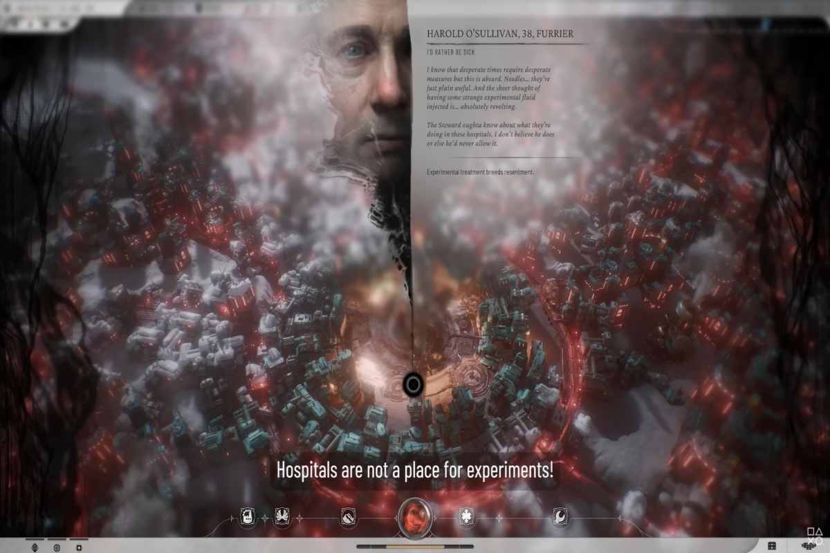 La modalità Utopia invece rende il gioco infinito: un sandbox con tutte le tecnologie sbloccabili, tutte le fazioni, tutte le risorse e nessuna missione da completare. Siete solo voi, la popolazione infuriata e due pessime scelte da fare per sopravvivere un altro giorno, diramandovi lungo alberi delle abilità che nascondono sotto una direzione artistica sublime dei contenuti agghiaccianti tra lavoro minorile, ghettizzazione dei malati, additivi artificiali per allungare il cibo e istaurazione di una tirannia.
