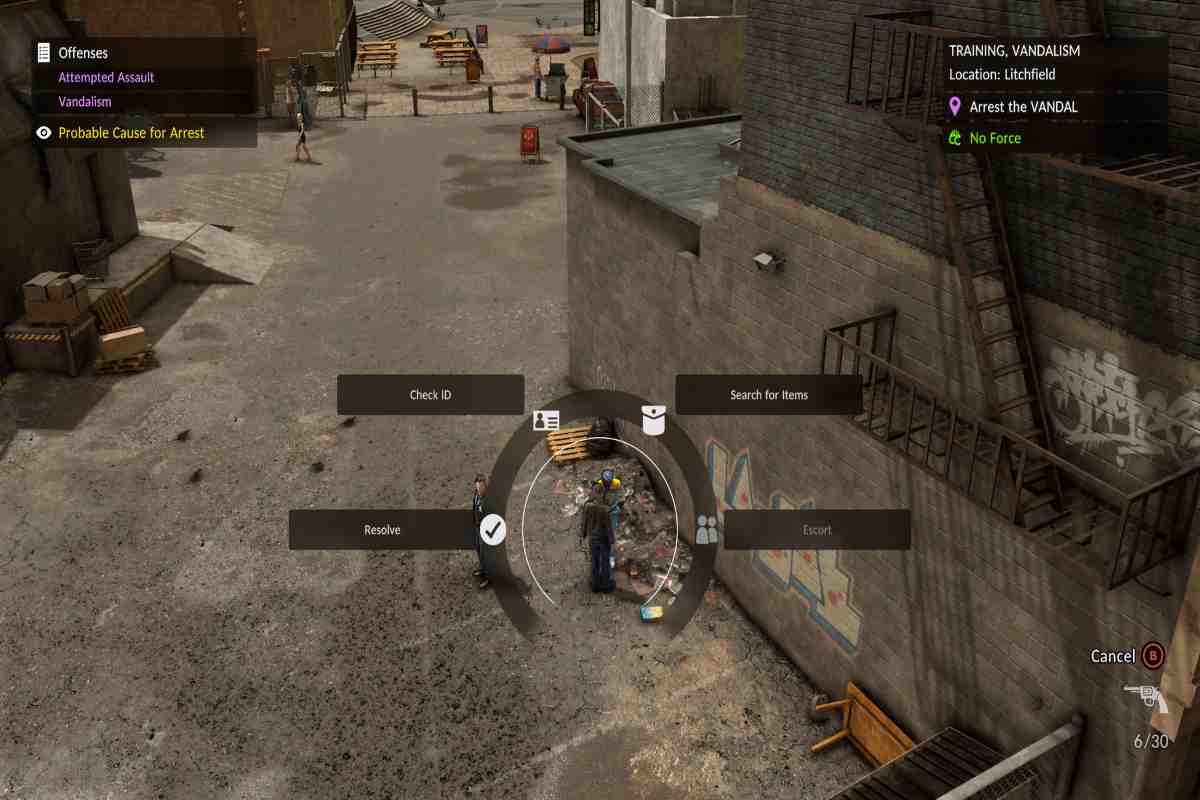 Tutta la procedura da seguire per rispettare il protocollo è sempre appagante: chiamata in centrale per una targa, auto da fermare, controllo dei documenti, perquisizione del bagagliaio ecc ecc. Ogni crimine corrisponde a una certa sanzione che dovremo elargire riempiendo il rapporto per fare un arresto pulito senza errori e guadagnare così punti. Altrimenti ci sono delle penalità che però si limitano a rallentare la nostra crescita e basta.