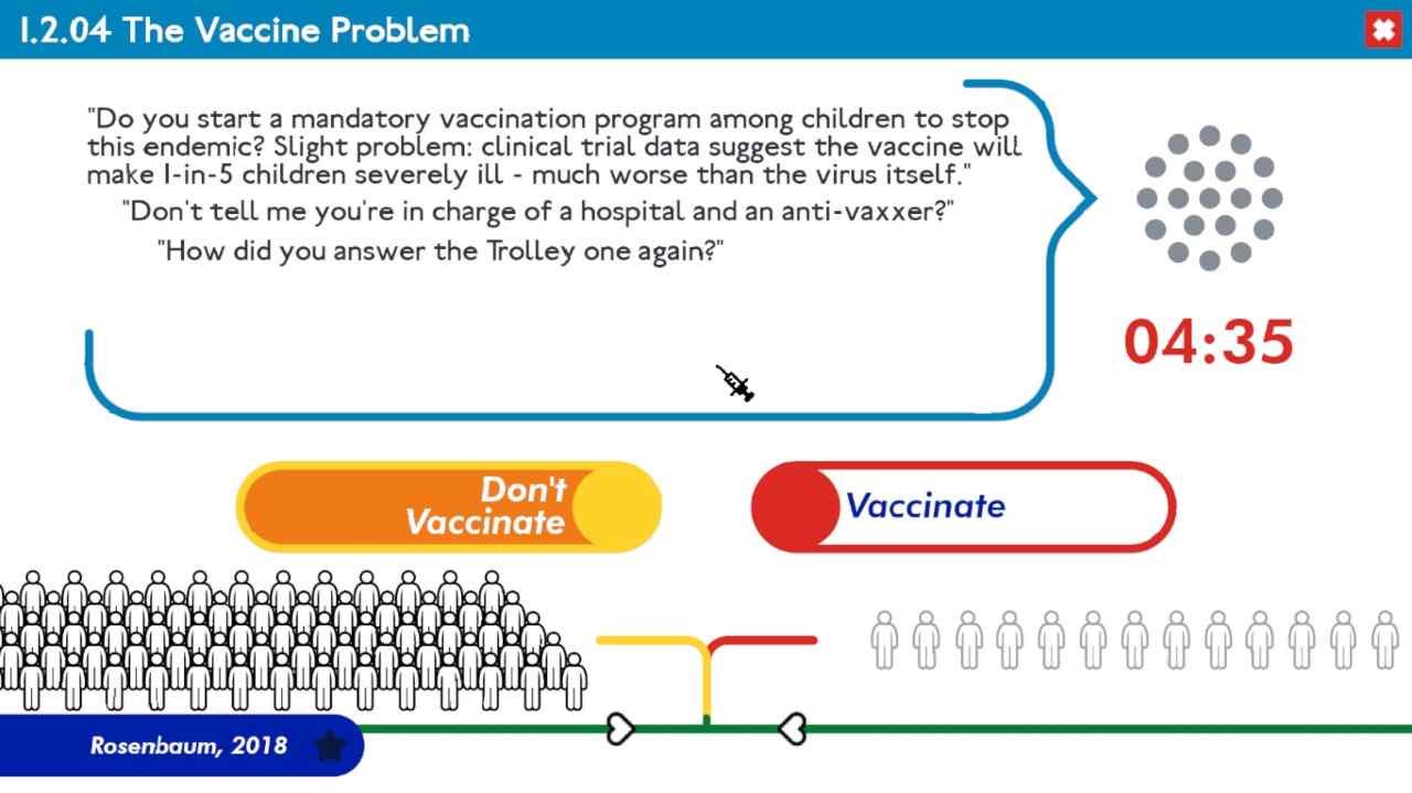 Ovviamente al centro dell’intero videogioco c’è l’introspezione psicologica e la riflessione sulla nostra morale, che certamente può differire da quella di un’altra persona. E anche su come la nostra morale cambia radicalmente in seguito all’aggiunta di nuove variabili. E’ infatti più semplice tirare la leva per salvare 5 se si sacrifica uno sconosciuto, molto più difficile sacrificare la piccola Polly, prima della sua classe e che sogna di diventare dottoressa per salvare le persone.