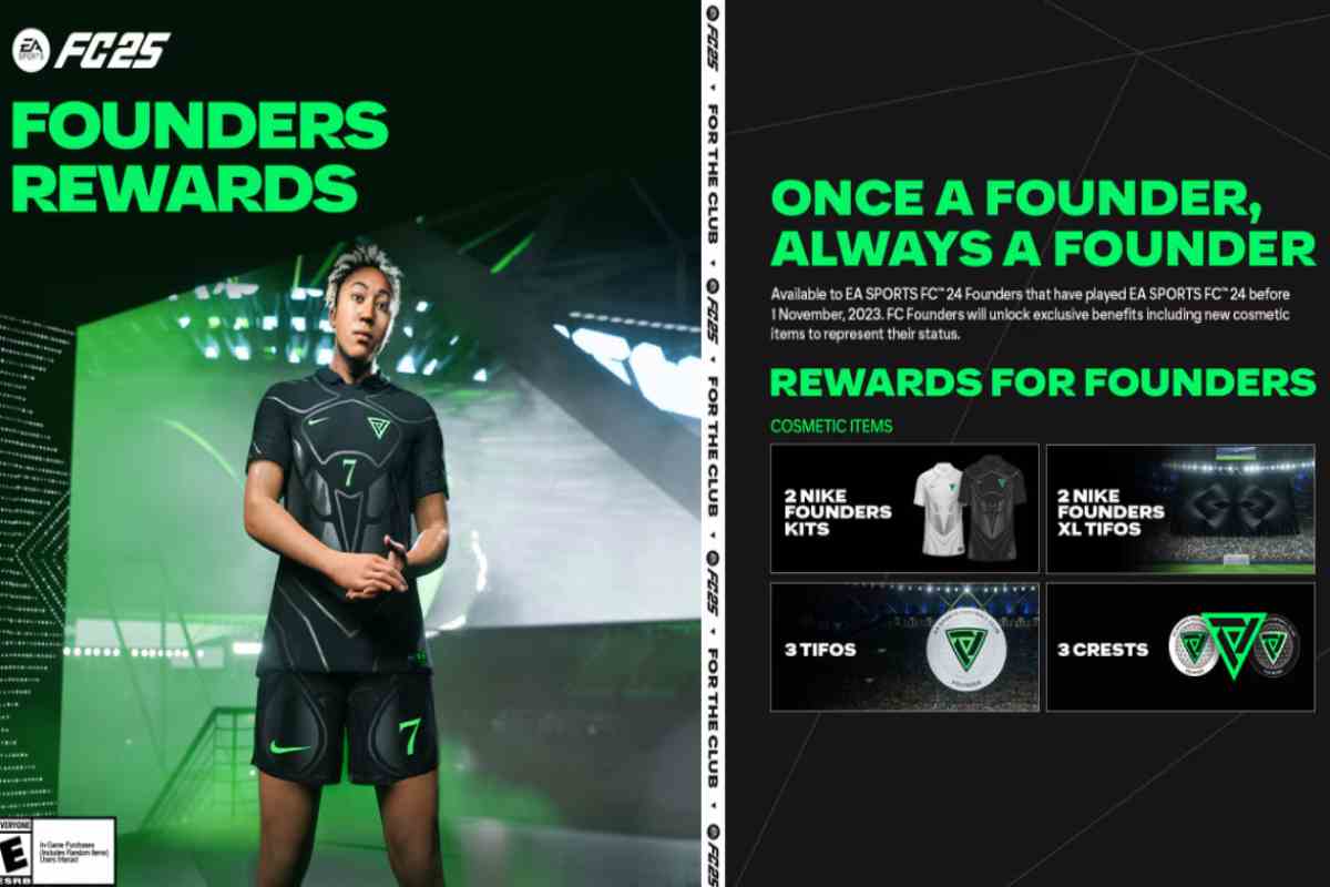Stiamo parlando di coloro che vengono identificati come founder o fondatori. Per essere riconosciuto con questo titolo devi aver giocato a FC 24 prima della data limite del 1° novembre 2023, e quindi avviare FC 25. E prima di farlo vi ricordiamo di leggere questa guida per non subire mai gol. Parliamo di un titolo importante che ovviamente fa sentire tutti premiati per la propria fedeltà al brand. Ma cosa si ottiene in quanto fondatore di FC?