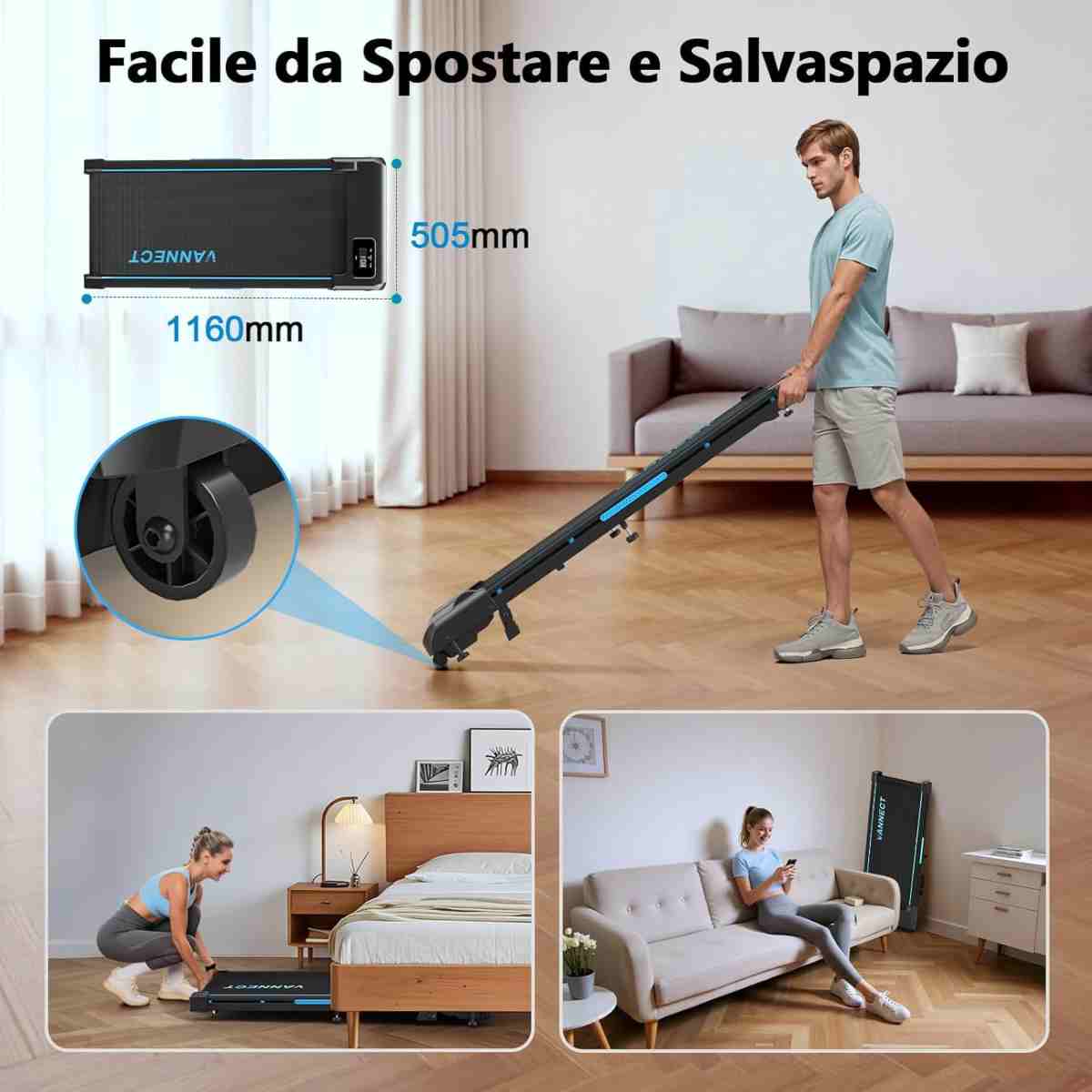 Il dispositivo di cui vogliamo parlarvi è il tapis roulant smart Vannect. Un dispositivo che è pensato anche per simulare un’inclinazione fino al 9% rispetto al suolo, permettendo sessioni di allenamento intense e veramente impegnative per chi desidera sfide reali.