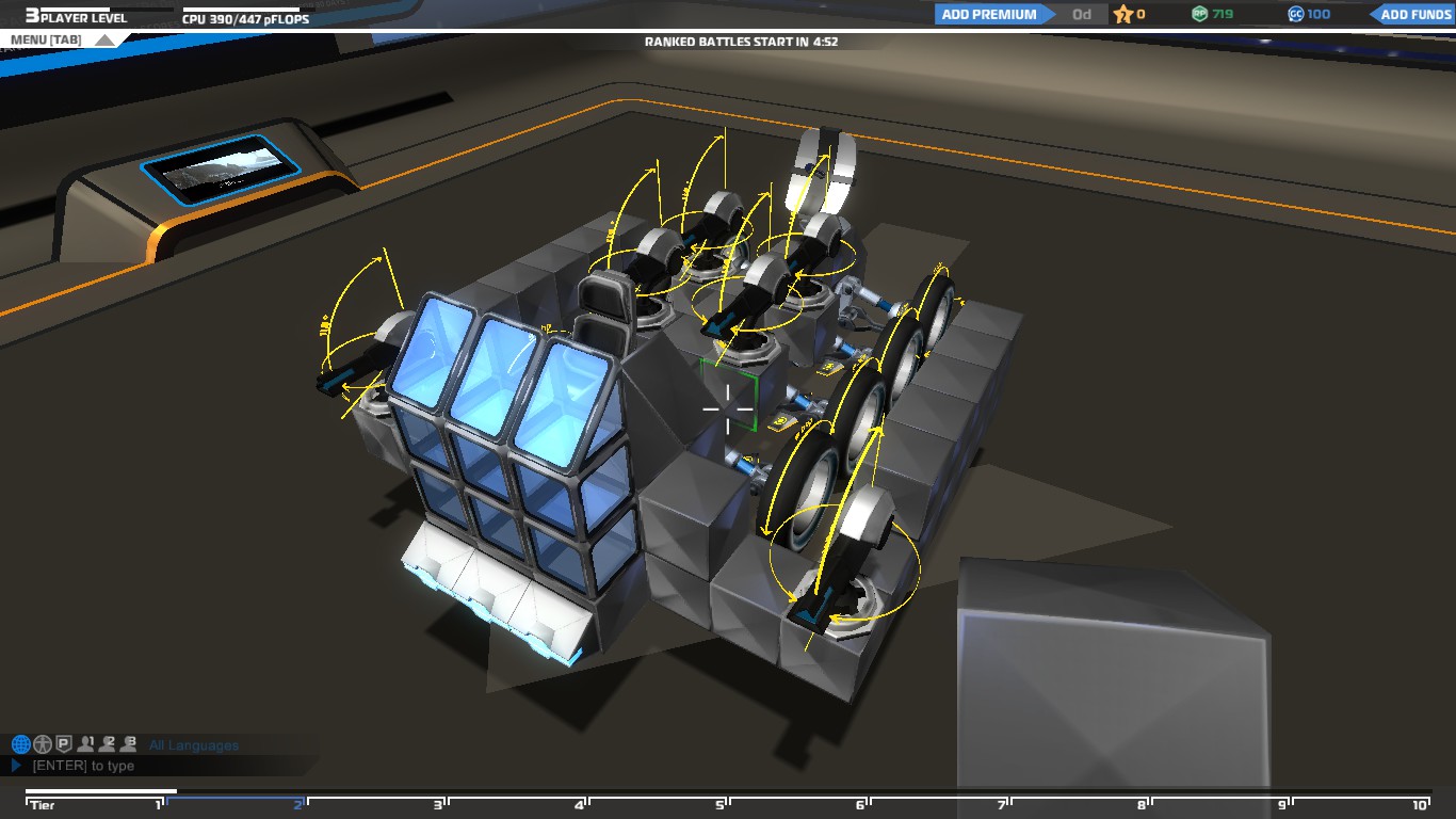 La principale attrattiva del titolo, comunque, risiede nella libertà concessa al giocatore per ciò che concerne la creazione del mezzo con cui partecipare alle battaglie online. Una volta effettuato il login nel client, infatti, verrete lanciati nella stiva creativa della vostra nave, in cui potrete assemblare a piacimento una serie di componenti. Inizialmente avrete a disposizione un kit base comprensivo di un robot di grado 1 e alcuni blocchi gratuiti da sfruttare a piacimento.
