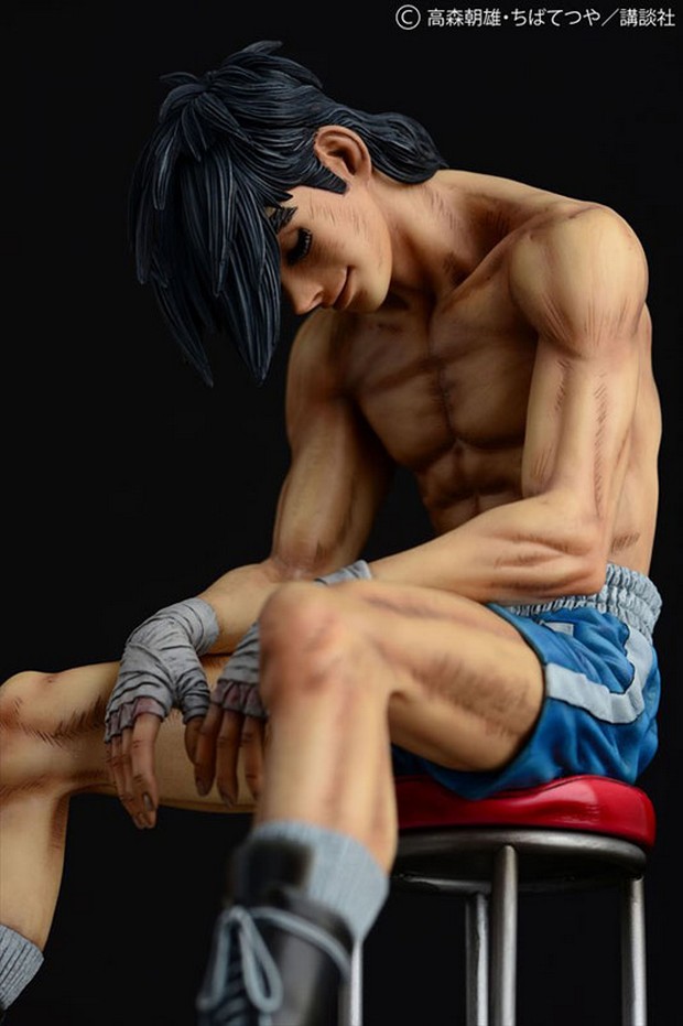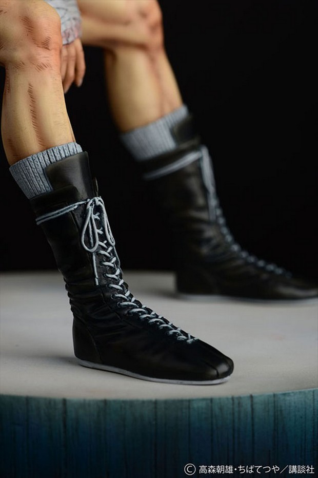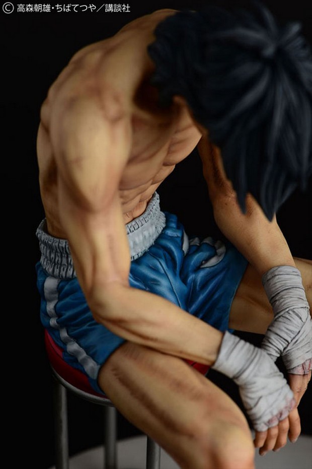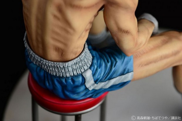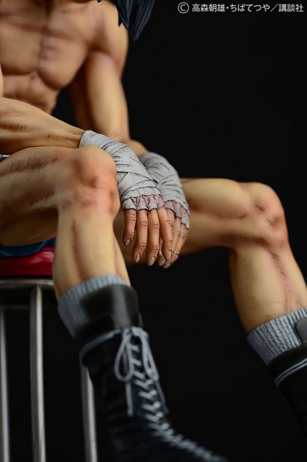 Prodotta in resina, la statua è stata scolpita da Ken Matsuura in scala 1/6 per un’altezza di circa 24 cm. La posa mostra Rocky Joe dopo il suo combattimento finale contro José Mendoza, seduto su un seggiolino con la testa abbassata e le braccia tra le gambe.