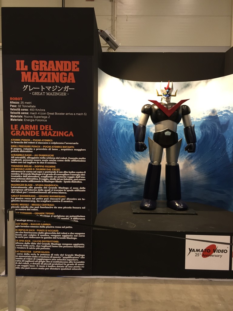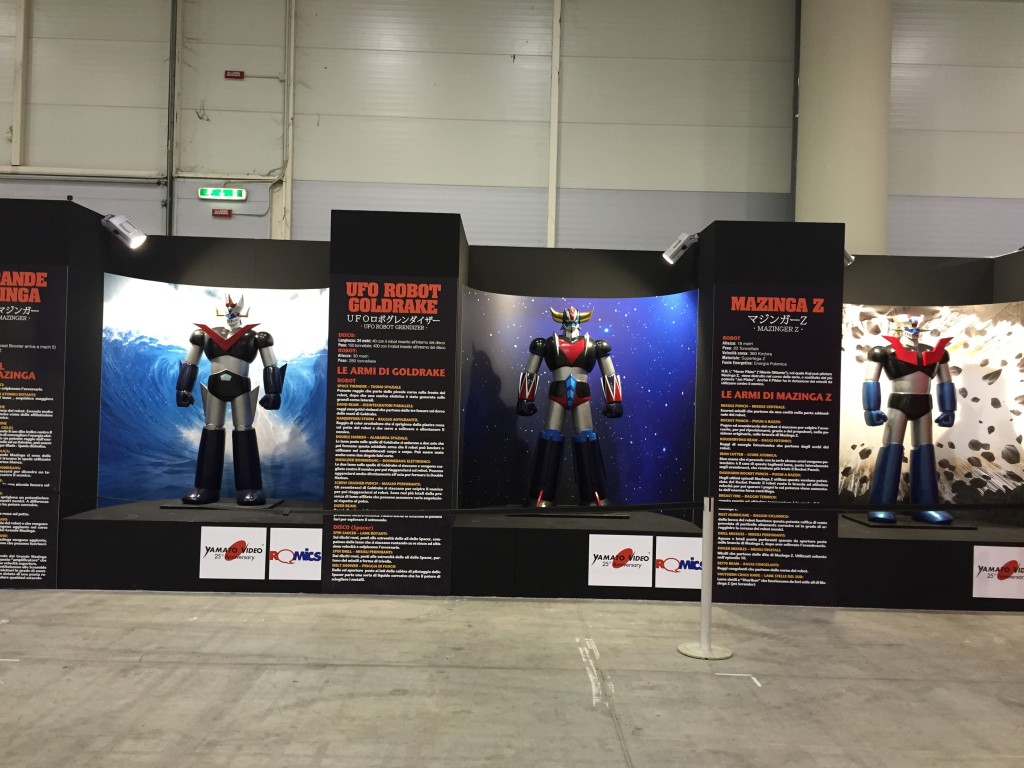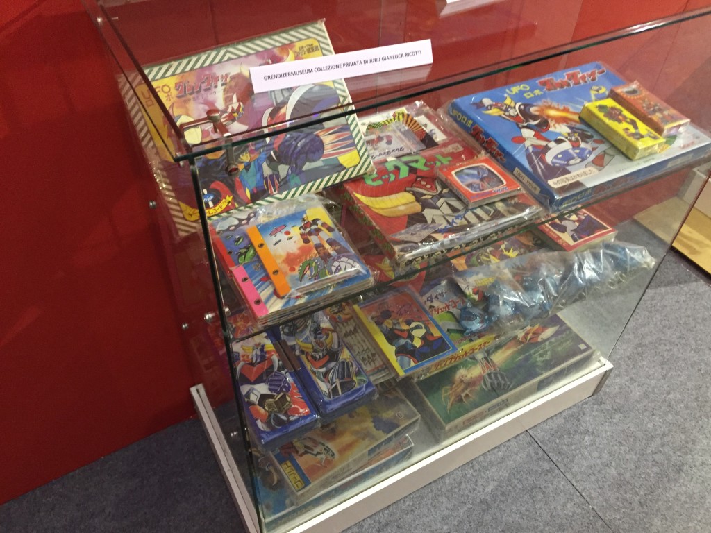 Un’altra esposizione a mio parere stupenda, oltre che unica nel suo genere, è stata la mostra di Jurij Gianluca Ricotti che ha voluto condividere la sua collezione privata di oggetti vintage dedicati al Grendizer (Goldrake). Si potevano ammirare pezzi anche molto rari come i giocattoli della Sperlari Italia, Fabianplastica e Mattel. Era inoltre presente tutta la produzione Popy Japan dedicata a Grendizer, compreso il famoso Jumbo Machinder, e tutte le versioni del ricercatissimo modello GA37.