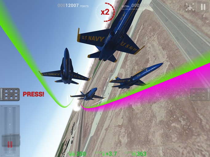 - Riproduzione di tutte le manovre ufficiali dei Blue Angels della US Navy