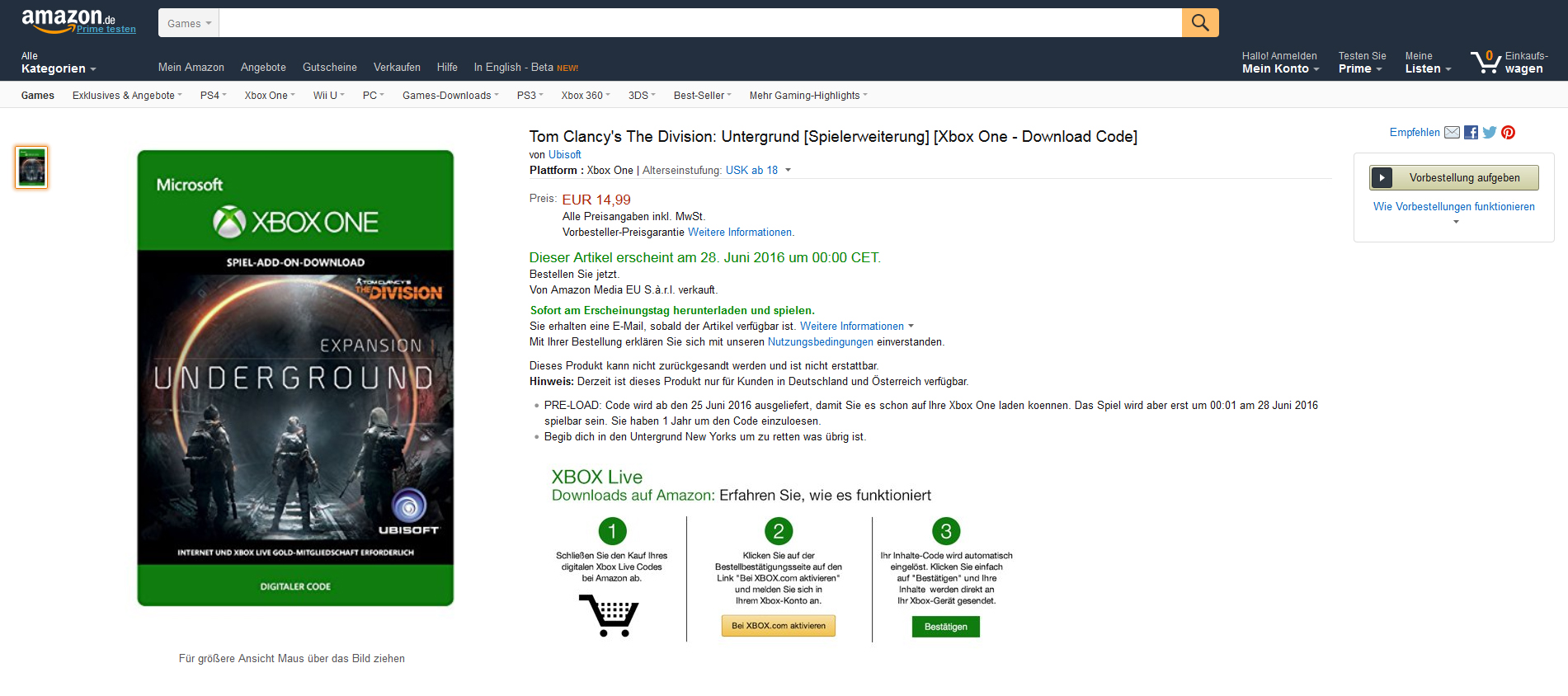 Emergono nuove indiscrezioni riguardanti il primo DLC a pagamento di The Division. La divisione tedesca di Amazon avrebbe infatti pubblicato in rete un voucher da acquistare per avere il codice utile a scaricare l’espansione Underground, che mostrerebbe la presunta copertina.
