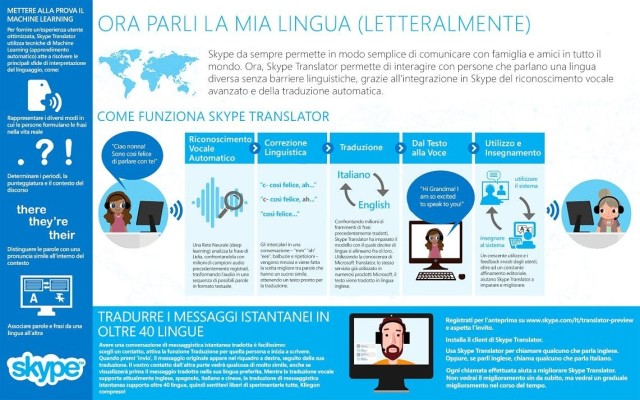 In allegato vi lasciamo il video di presentazione e un’immagine riassuntiva sul funzionamento di Skype Translator. Potete anche iscrivervi al programma e sperare di essere selezionati per provare Skype Translator in anteprima.
