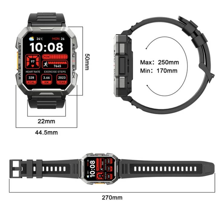 Tante funzionalità salute, lo smartwatch militare Iowodo ha dei sensori per il monitoraggio della frequenza cardiaca in tempo reale, ma anche della qualità del sonno, dell’ossigeno nel sangue e dei livelli di stress E’ Compatibile con Android 6.0 e iOS 9.0 o versioni successive.