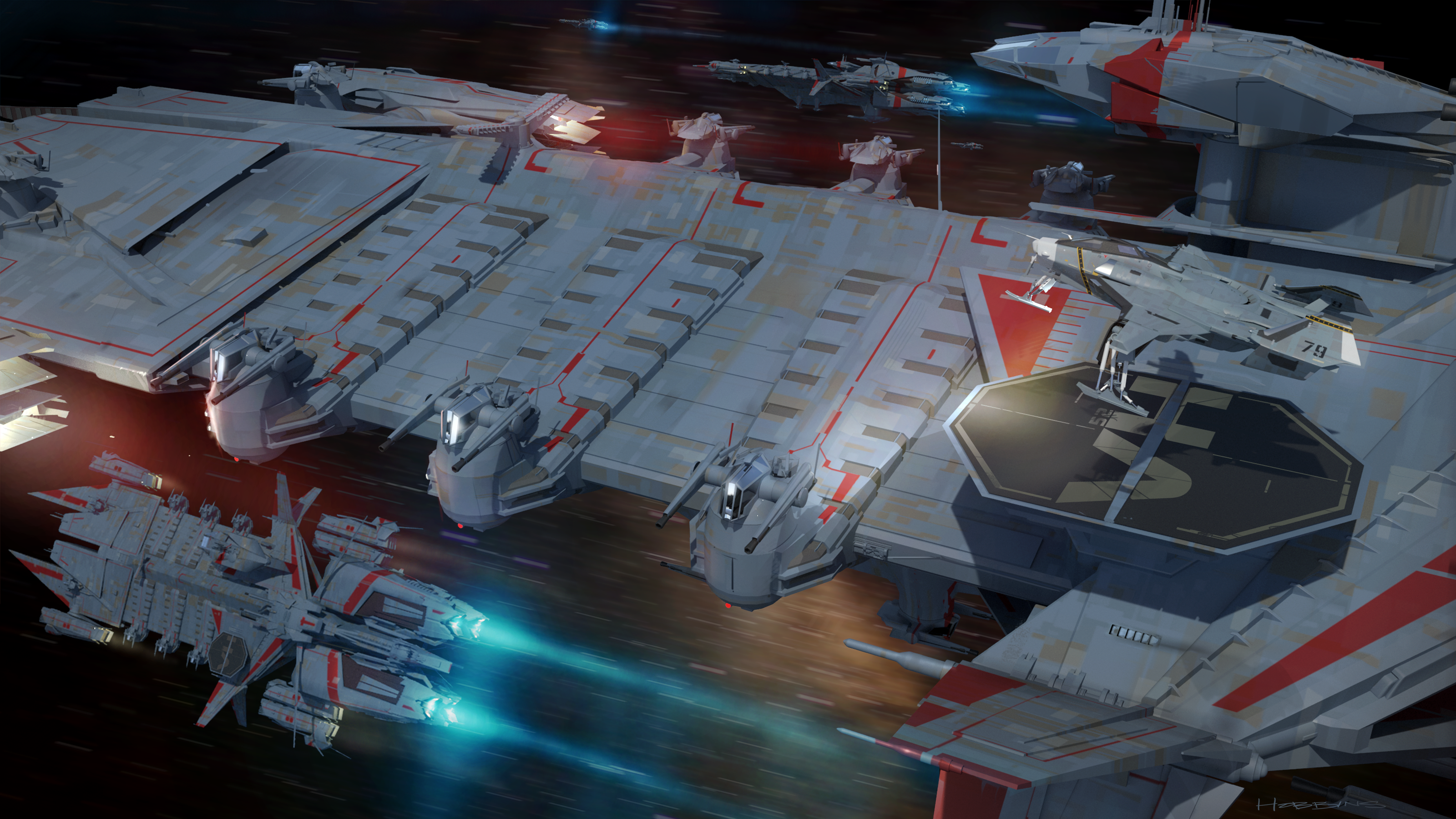 • Altra novità è l’aggiunta di una nuova astronave. Si tratta del Javelin, una nave UEE di classe destroyer. Il team guidato da David Hobbins si è concentrato non solo nel creare un aspetto esteriore accattivante, ma degli interni che evochino i corridoi affollati di una nave di queste proporzioni. La nave sarà modulare e quindi sarà possibile sostituire parti per adattarla a diversi ruoli. Attualmente il Javelin si trova nelle fasi iniziali dello sviluppo, quindi le immagini che vi mostriamo nella galleria potrebbero differire rispetto a quello che sarà il risultato finale.