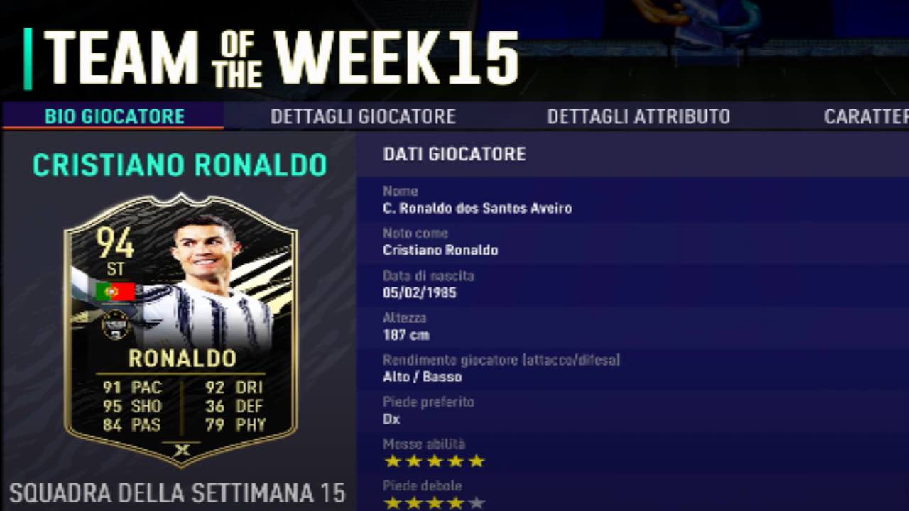 FIFA 21 e Ronaldo 94, la settimana 15 in gran forma