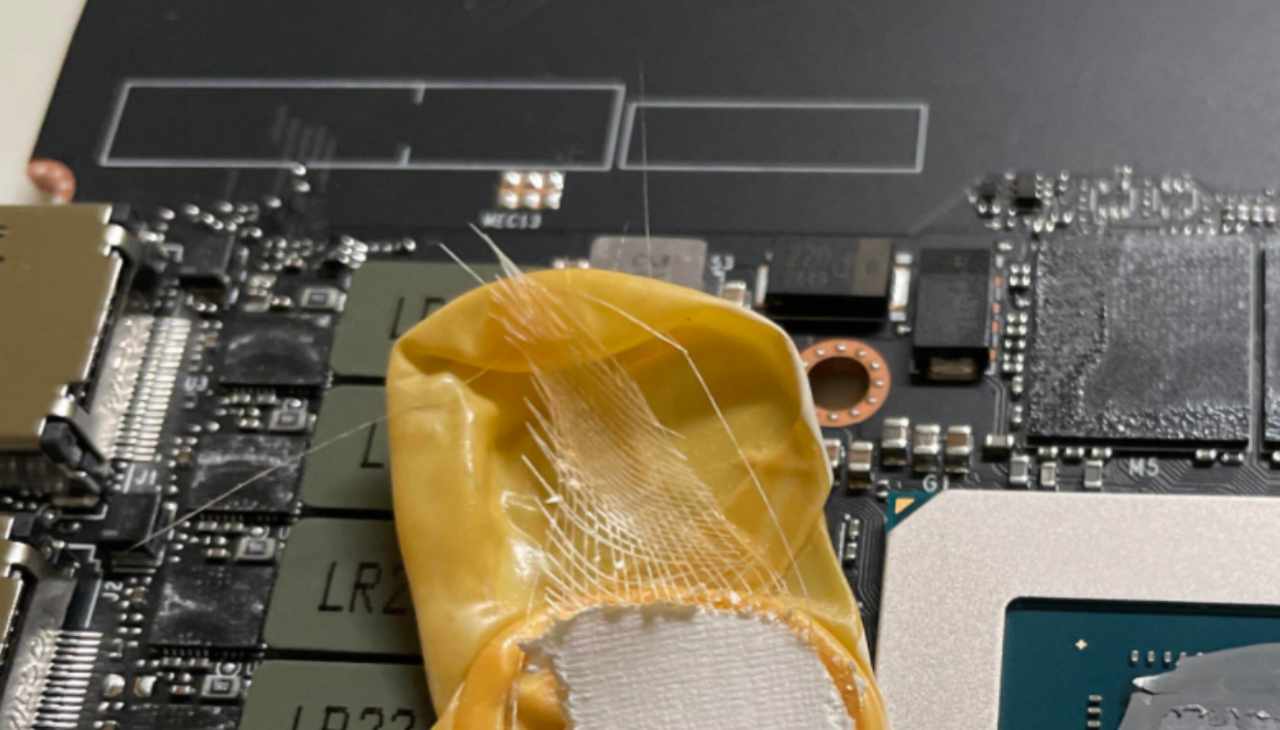 All’apertura la sorpresa. Il problema c’era. Un pezzetto di guanto, un piccolo copri-dito che viene usato sulla catena di montaggio per proteggere gli operatori nelle fasi di assemblamento. Il pezzo era immerso nella pasta termica, sopra il processore centrale della scheda.