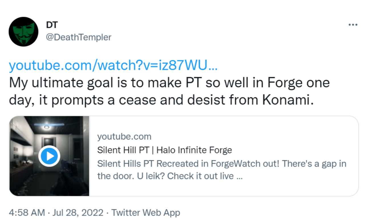 Sembra un gioco di scatole cinesi ma è esattamente così che l’utente YouTube Death Templar è riuscito a riportare in vita il progetto del grande sviluppatore utilizzando quello che i dataminer sono riusciti a rintracciare dalla Beta della modalità Forgia di Halo Infinite. Per una strana legge matematica due cose che non esistono ne hanno fatta una che esiste.