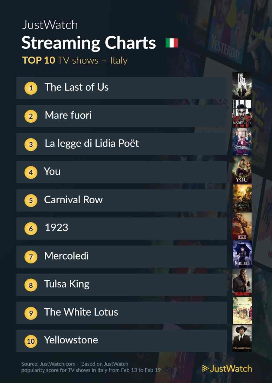 Ben due nuove serie italiane stanno tallonando The Last of Us di HBO, con un podio settimanale che vede il tionfo dell’Italia.