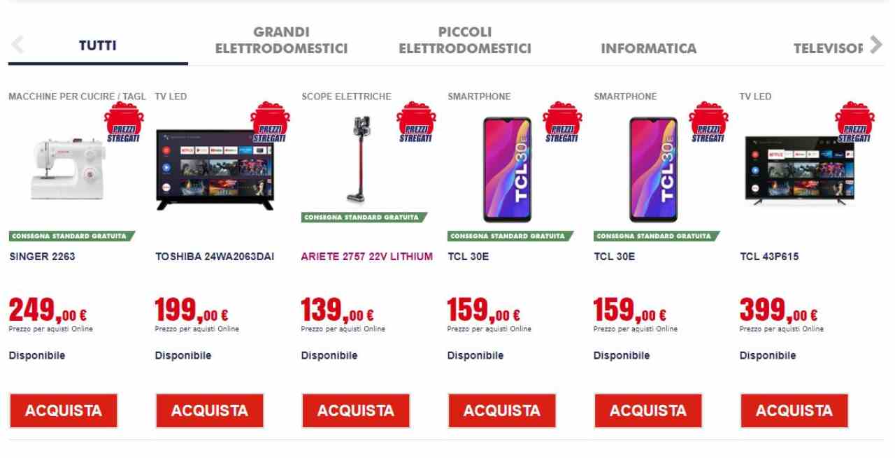 Dopo che è passata la precedente promozione denominata “Sconto Tosto”, la nota catena di distribuzione di elettronica ed elettrodomestici ha deciso di dare vita alla promo “Prezzi stregati”. Un nome che, come facilmente intuibile, è stato scelto per la festività di Halloween, e lo stesso volantino sarà attivo solo per pochi giorni, fino al prossimo 4 di novembre. Di conseguenza, se voleste festeggiare il giorno più pauroso dell’anno con un bell’acquisto tecnologico, da Trony avrete l’occasione per farlo. Come al solito la carne al fuoco è tanta, visto che non mancano occasioni sui centinaia di prodotti che siano le immancabili smart tv, alla luce anche dello switch off del digitale terrestre sempre più imminente, passando dagli smartphone, i computer portatili e molto altro ancora. Ma vediamo nel dettaglio alcune di queste offerte interessanti, a cominciare proprio dai televisori. Da Trony con “Prezzi stregati” troveremo il televisore Toshiba 24WA2063DAI, smart tv economica da 24 pollici, in vendita a soli 199 euro. Attenzione anche al modello da 43 pollici a marchio TCL, leggasi il TCL 43P615, un televisore Ultra HD 4K in vendita a soli 299 euro anziché i classici 399 di listino. Infine, per quanto riguarda le televisioni intelligenti, occhio all’ottimo LG NanoCell del 2022 con display da 4K e 55 pollici, in vendita a soli 599 euro: che affare!