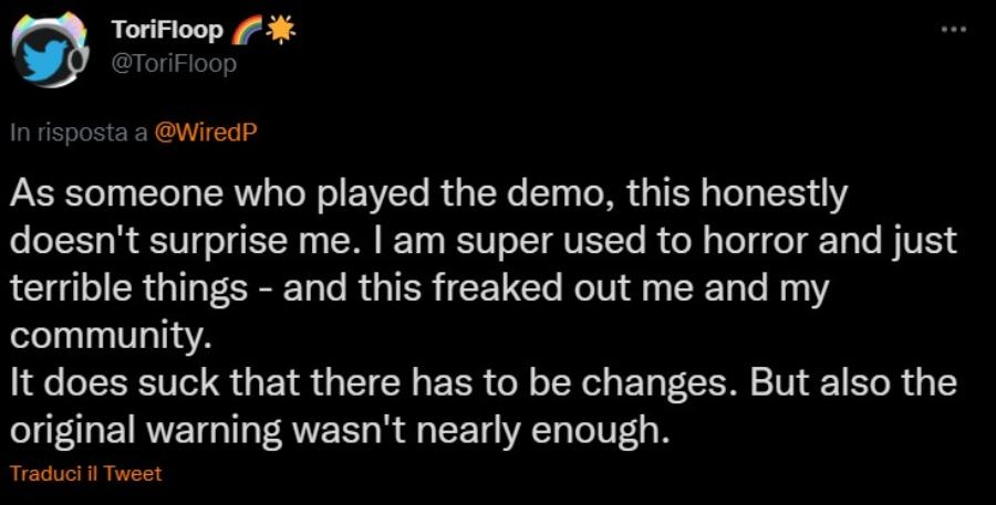 Pare infatti che nel gioco ci siano delle scene estremamente violente e grafiche, che potrebbero turbare i videogiocatori. E anche parecchio. In questo senso, ipotizza un utente che ha giocato la demo, le richiesta di Playstation appare plausibile dato l’elevato livello di gore di alcune sezioni del gioco.