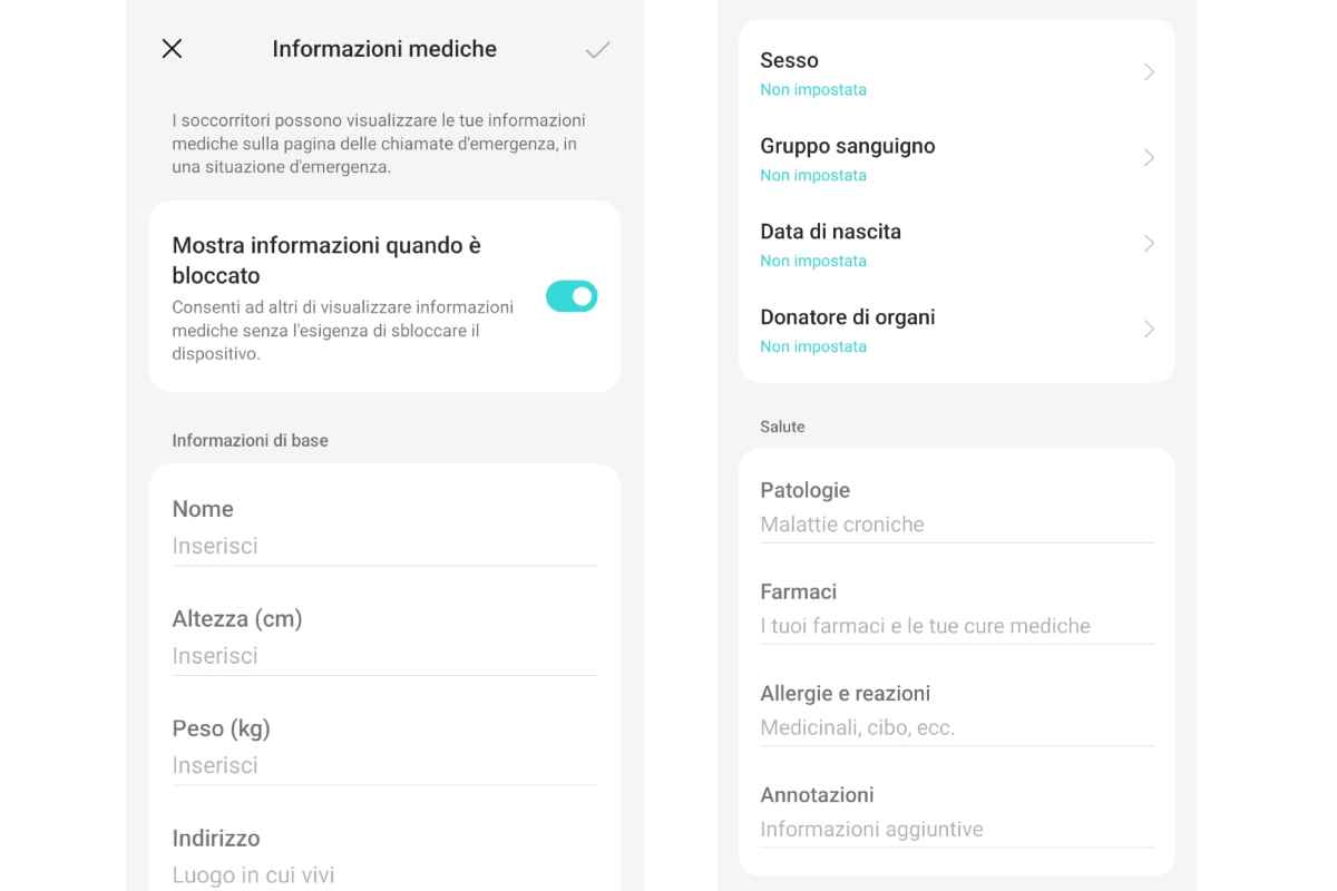 Verrai guidato verso un menu in cui potrai mettere tutti i tuoi dati personali, a partire dal nome e cognome e passando per altre informazioni più tecniche e fisiologiche, come per esempio il fatto se sei o meno donatore di organi e qual è il tuo gruppo sanguigno.