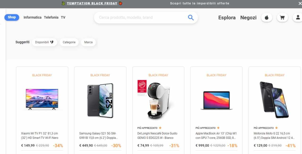 La nota catena di elettrodomestici ed elettronica ha prolungato il suo “Temptation Black Friday”, una serie di offerte e di sconti che appunto anticipano il vero Black Friday. Queste nuove promo sono entrate in vigore nella giornata di ieri, giovedì 10 novembre 2022, e andranno avanti fino al prossimo 16 di questo mese, e permetteranno a chi vuole di assicurarsi svariati oggetti di alta tecnologia, fra smartphone, smart tv, computer e molto altro ancora, a prezzi di saldo. Ma vediamo come sempre qualche prodotto in saldo rispetto al normale prezzo di listino, a cominciare dall’ottimo smartphone di casa Oppo, leggasi il Reno6 Pro, in vendita a soli 429,90 euro, con un taglio quindi del 46% rispetto al normale prezzo di listino, solitamente a 799.90 euro. Si tratta di un telefono davvero interessante in quanto dotato di un display AMOLED FHD+ da 6,55 pollici, con l’aggiunta di ben 12 GB di RAM, e 256 GB di archiviazione, batteria da 4.500 mAh con ricarica a 65W e chipset Qualcomm Snapdragon 870. A livello fotografico, invece, abbiamo quattro sensori posteriori, a cominciare da quello principale da 50 megapixel, con lente singola anteriore da 32 MP. Molto interessante anche lo sconto di Unieuro sul Motorola moto G22, in vendita a soli 129 euro rispetto al prezzo canonico da 219.90 euro. In questo caso stiamo parlando di un telefono con display da 6,5” HD+, refresh rate di 90Hz, oltre ad una fotocamera per selfie da 16 MP, con l’aggiunta di quattro lenti sul retro fra cui quella principale da 50 megapixel.