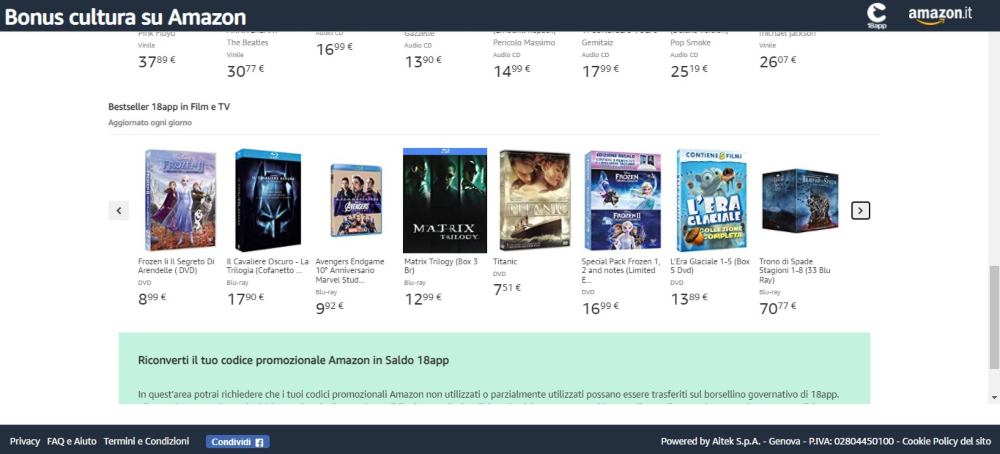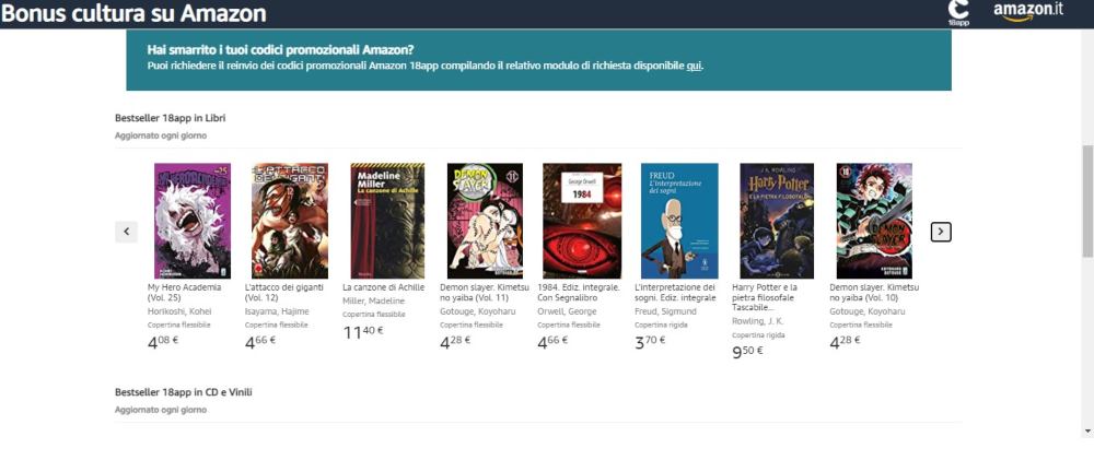 Ovviamente non possiamo stendere un quadro completo, esaustivo ed aggiornato al minuto su quello che i 18enni itaiani stanno acquistando in questi giorni con i 500 euro messi a disposizioni dal Governo. Certamente però, esaminando la pagina ufficiale dedicata su Amazon, ci si può fare un’idea piuttosto interessante.