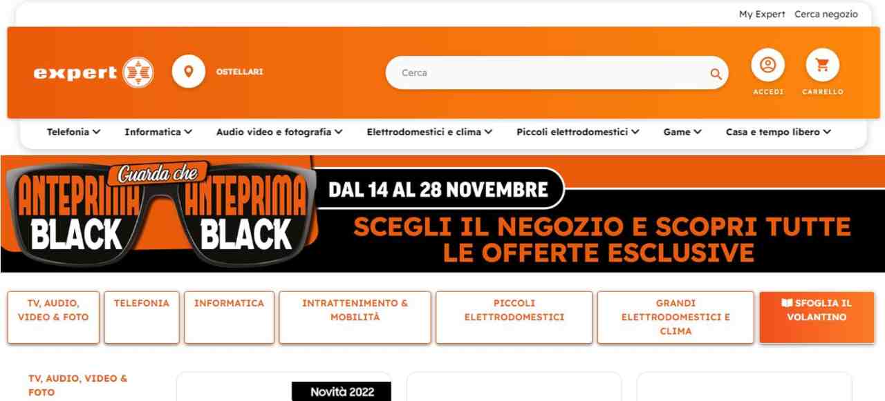 Da qualche ora a questa parte Expert ha deciso di dare vita al suo nuovo volantino “Anteprima Black”, con riferimento appunto all’ultimo weekend del mese, in cui sono stati messi in sconto numerosi oggetti d’alta tecnologia fra smartphone, smart tv, notebook, elettrodomestici, console videoludiche e molto altro ancora. Tantissimi i prodotti che troveremo con un netto taglio di prezzo rispetto al normale di listino, come ad esempio iPhone 11, Galaxy S22, OPPO A54S, il notebook ASUS F515 e lo smart TV Samsung Crystal UHD 4K HDR da 50″, giusto per citare i primi prodotti che ci vengono in mente dopo aver spulciato il volantino. La particolarità di questa nuova promo di Expert è che la stessa sarà valida sia negli store fisici quanto nei negozi online, e fino al prossimo 28 novembre 2022, di conseguenza ingloberà anche il Black Friday anche se è molto probabile che nel corso dei prossimi giorni le offerte a listino saranno rinnovate. Di seguito abbiamo selezionato per voi un elenco di prodotti in offerta da Expert, come ad esempio l’ottima smart tv Samsung 4K da 50 pollici con il 31 per cento di sconto, ma anche l’OLED di LG da 55 pollici in vendita a 999 euro grazie ad un taglio del 29%. A livello di smartphone, invece, spicca senza dubbio l’ottimo Galaxy S21 5G, venduto da Expert a soli 449,90 euro, praticamente metà prezzo, mentre per l’iPhone 11 da 128 gigabyte vi serviranno 609 euro.