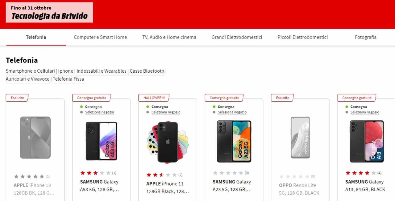 Si chiama “Tecnologia da Brivido” e fa il verso ad Halloween, festa che giungerà proprio a cavallo fra ottobre e novembre, e storicamente la giornata più spaventosa dell’anno. Tantissimi i prodotti in offerta a cominciare dagli smartphone, passando per le smart tv, quindi piccoli e grandi elettrodomestici, ma anche auricolari, computer e molto altro ancora. A questo link troverete la pagina generale della promozione “Tecnologia da Brivido” direttamente dal sito di Mediaworld, mentre più sotto abbiamo selezionato per voi alcuni dei prodotti a nostro avviso più interessanti fra quelli scontati. Si comincia con gli oggetti più ricercato, quelli a marchio Apple, a partire dall’iPhone 13, passando per le AirPods di terza generazione e arrivando fino all’iPad. Spazio poi agli smartphone Samsung Galaxy, come l’A13, l’A23 e l’A53, e non possono mancare tablet, notebook e stampanti. Infine, occhio alle smart tv e alle soundbar, con degli scontri davvero meritevoli d’attenzione. A questo punto non ci resta che lasciarvi alla visione della nostra selezione ed eventualmente ad un buono shopping, qui invece troverete il link al volantino sconti d’autunno di Unieuro , mentre a questo link spazio agli sconti su Apple sempre da Unieuro.