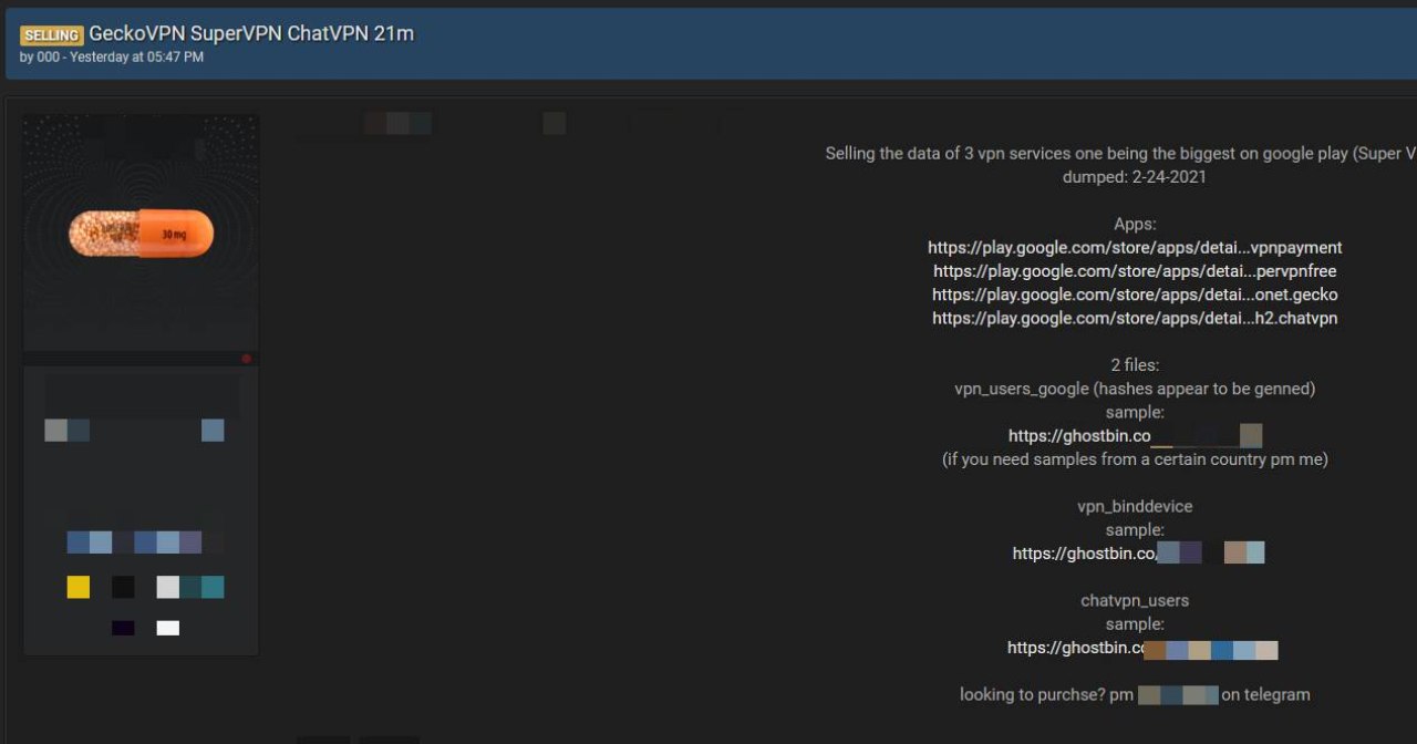 Infatti, CyberNews pubblica un articolo dove viene detto che un utente ha pubblicato su un noto forum di hacker un annuncio di vendita di ben 3 database di dati (per un totale di 21 milioni di utenti che vedono i propri dati in vendita). SuperVPN si è già dimostrata inaffidabile, avendo avuto problemi simili già luglio scorso e, per questo, è stata rimossa dal Google Play Store per impedire ulteriori download.