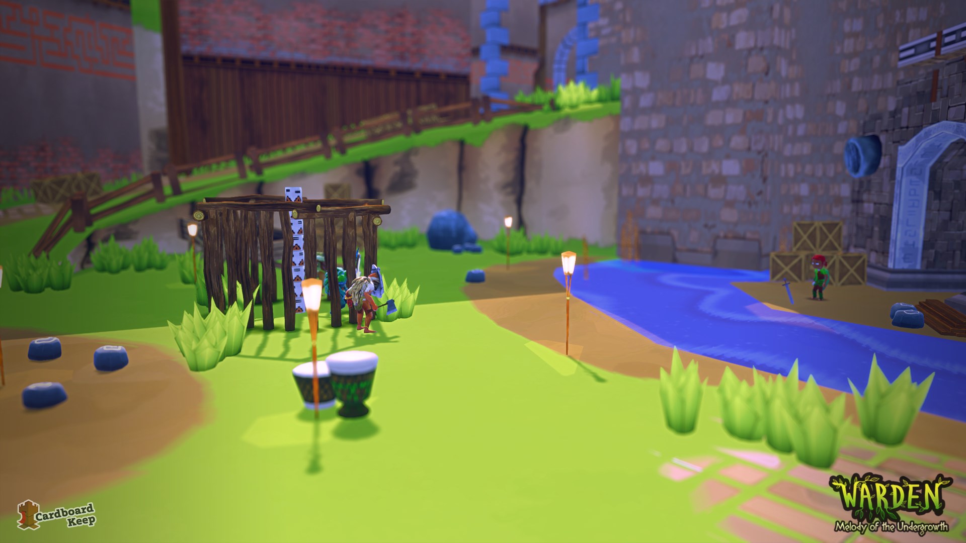 Sto palesemente scherzando, ma Warden: Melody of the Undergrowth, il protagonista di questa recensione, sembra proprio essere stato estratto da quell’epoca.Warden - 7Con una grafica cartoonesca e pixelosa, Warden sicuramente non è un titolo adatto a coloro che ricercano la perfezione visiva, ma non per questo è da scartare a priori, come l’esperienza ci insegna. Questa produzione sa infatti farsi amare per lo splendido gameplay action/adventure, che va a riprendere dai mostri sacri del genere, come Zelda. Ma andiamo per ordine, che forse è la cosa migliore.