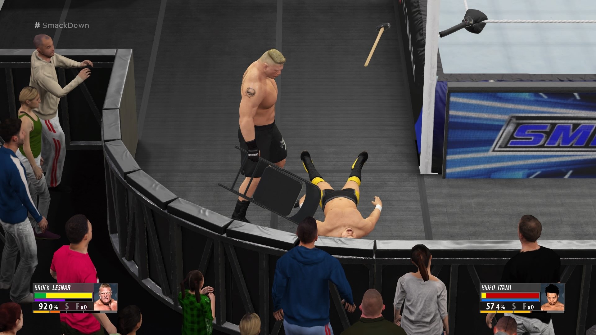 Una volta terminate le “stack” disponibili, queste si caricheranno nel tempo, il che ci porterà a “dosare” i contrattacchi. Restare senza protezione, soprattutto verso la fine del match, potrebbe risultare fatale ai fini della vittoria. Se da un lato alcune nuove meccaniche di gioco hanno reso il titolo più simile alla realtà, altre ci faranno rendere conto che invece stiamo semplicemente “simulando”: durante gli schienamenti o le prese di sottomissione, partiranno alcuni mini-giochi che determineranno l’esito dell’azione. Francamente potevamo farne a meno!