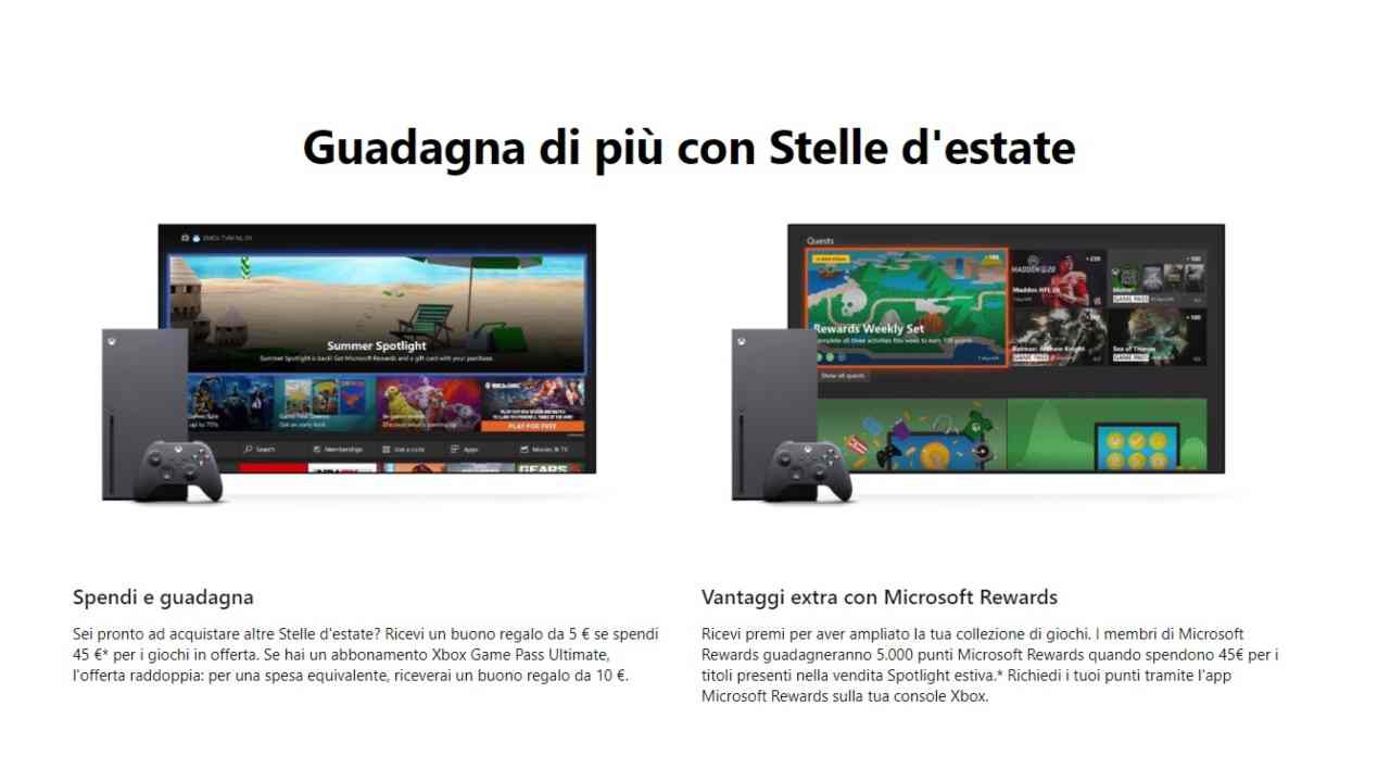 L’estate Xbox diventa più interessante. L’operazione Summer Spotlight, oltre a rinnovarsi settimanalmente con giochi nuovi, permette anche di ricevere una carta regalo Xbox che può arrivare fino a 10 euro. Per i membri di Microsoft Rewards ci sono poi anche 5000 punti. Ma come si fa ad ottenere il buono? In realtà non dovete fare molto, basta fare acquisti seguendo le istruzioni della pagina dedicata alla promozione.