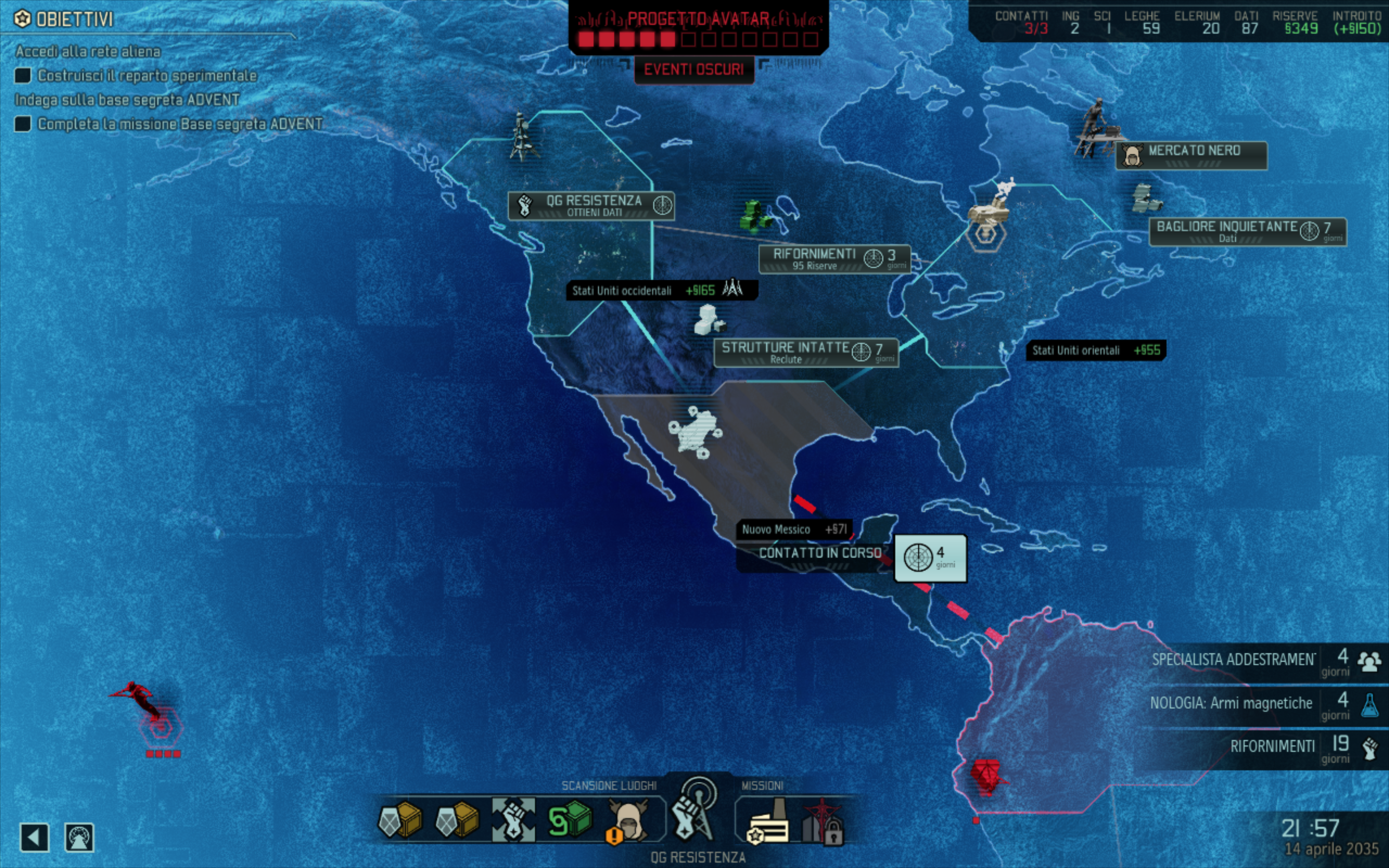 Alla prima partita in molti rischiano di trovarsi sopraffatti dai progressi nemici prima ancora di capire le dinamiche di gioco, che per inciso sono ancora più impegnative e basate su risorse che non bastano mai. Dovendo riconquistare il globo, la modalità scansione abbraccia una visuale simil Risiko con le cellule di resistenza divise in zone che dividono ciascun continente in due o più parti.
